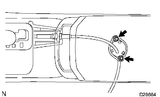 c. Remove the 2 bolts and disconnect the transmission control cable assembly from body.