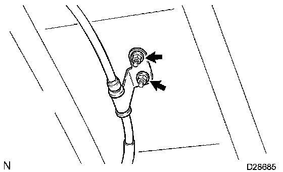 d. Remove the 2 nuts and disconnect the transmission control cable assembly from body.