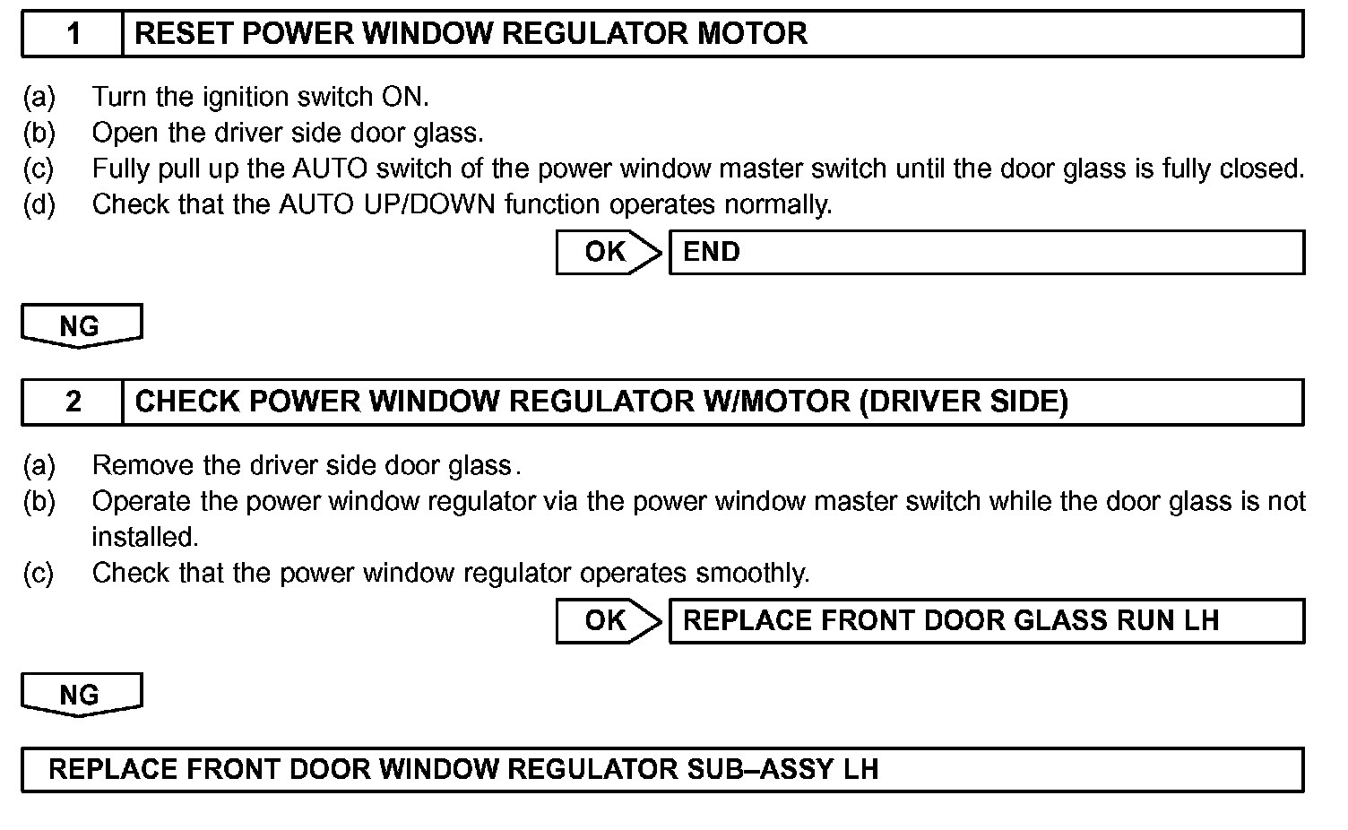 If the door glass or the power window regulator does not smoothly operate, the jam protection function may operate abnormally, resulting in this symptom.