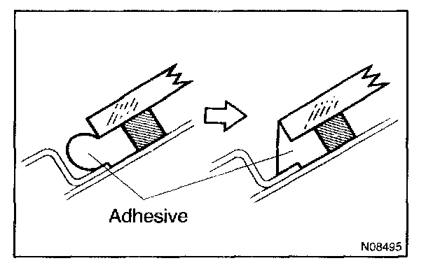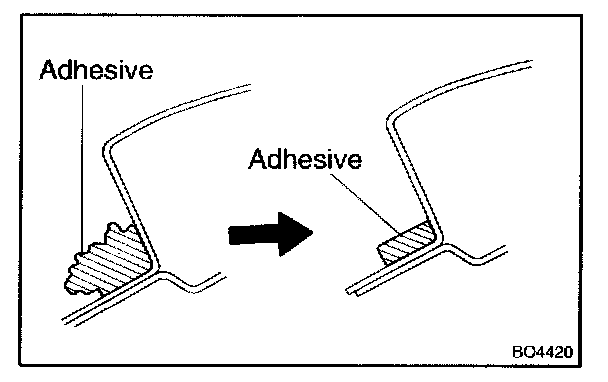 1. Using a knife, cut away any rough adhesive on the contact surface of the body to shape the surface.
