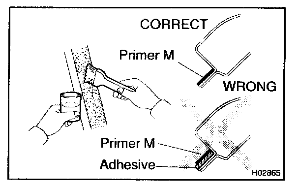 HINT: If the area other than the specified is coated by accident, wipe off the primer with a clean shop rag before it dries.