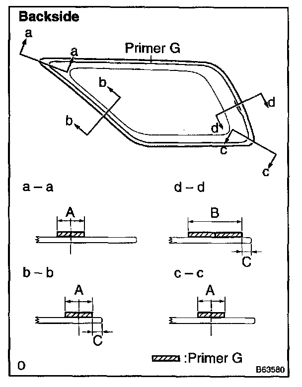 c. Using a brush or sponge, coat the edge of the glass and the contact surface with Primer G.