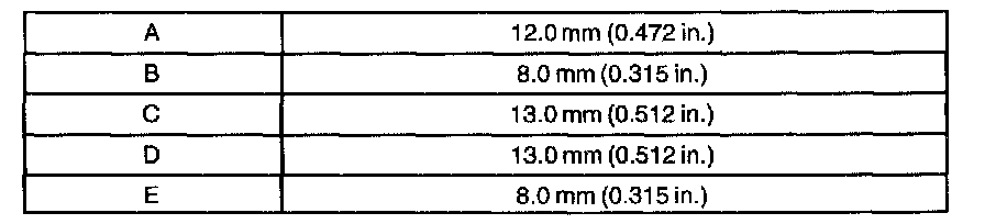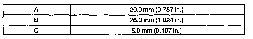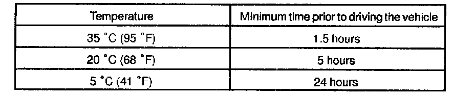 NOTE: Take care not to drive the vehicle curing the time described in the table below.
