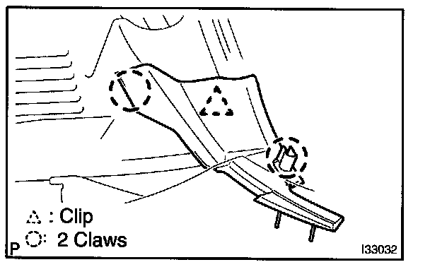 b. Release the 2 claws, and remove the front fender to cowl side seal LH.