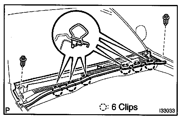b. Using a clip remover, disengage the meshing of 6 clips.