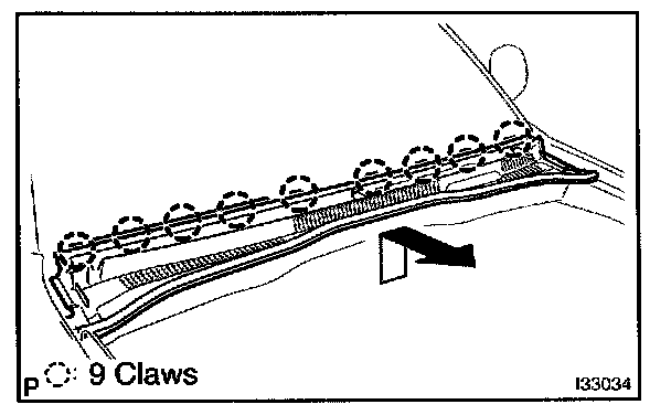 c. Remove the 9 claws and cowl top ventilator louver sub-assembly.