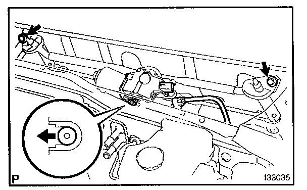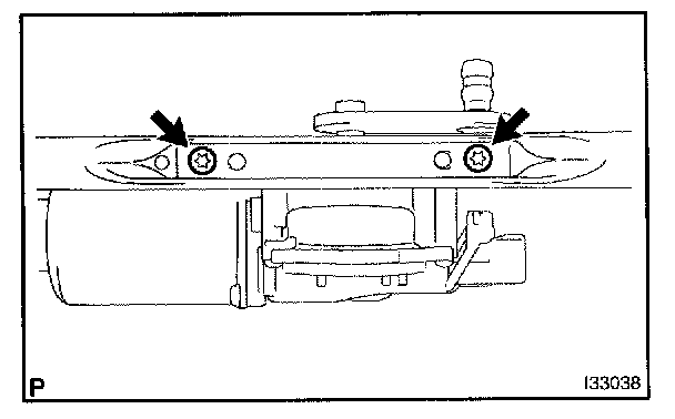 b. Remove the 2 bolts and windshield wiper motor assembly.