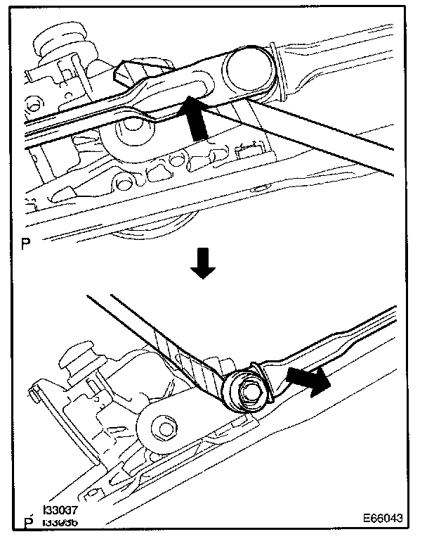 a. Using a screwdriver and disengage the meshing of 2 rods at the clank arm pivot of the windshield wiper motor assembly.