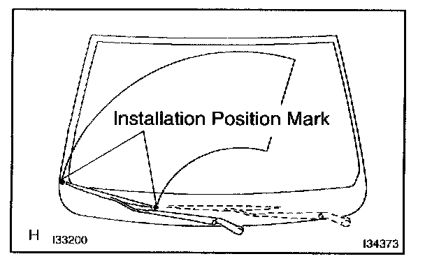d. Install the front wiper arm LH with a nut to the position shown in the illustration.