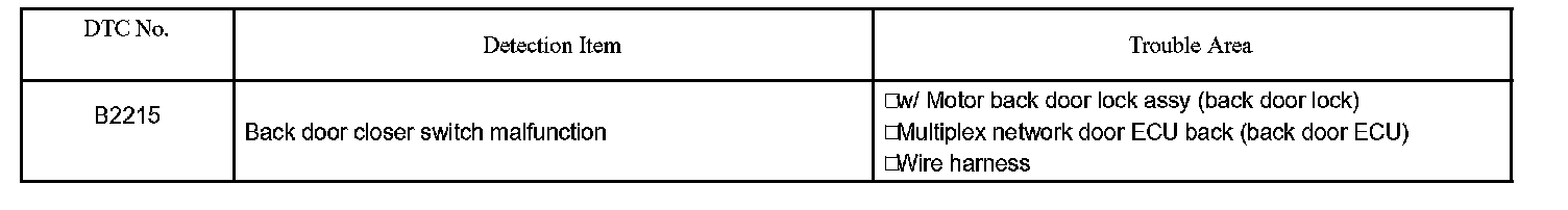 If a malfunction code is displayed during the DTC check, check the circuit listed for that code in the table.
