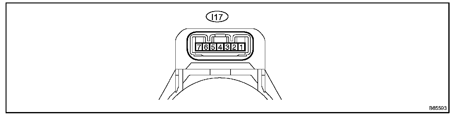 b. Reconnect the I17 amplifier connector, and check the continuity or voltage of each terminal of the connector.
