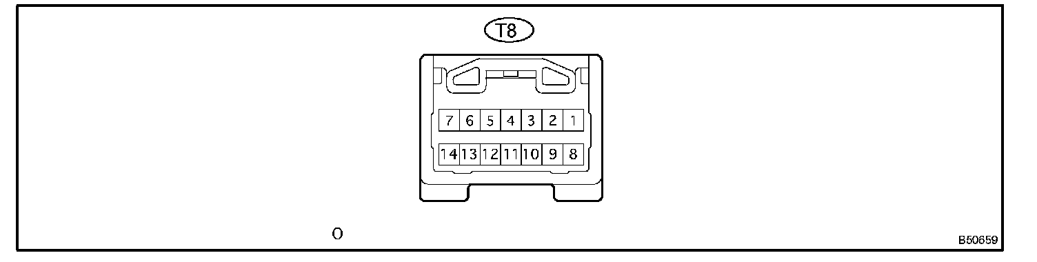 a. Disconnect the T8 ECU connector, and check the voltage or continuity between each terminal of the wire harness side connector.