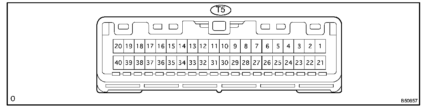 a. Disconnect the T5 ECU connector, and check the voltage or continuity between each terminal of the wire harness side connector.