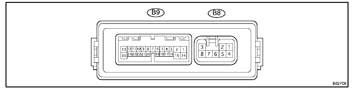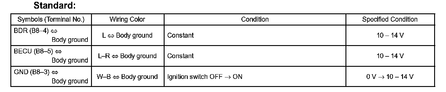 a. Disconnect the B8 ECU connector, and check the voltage of each terminal of the wire harness side connector.