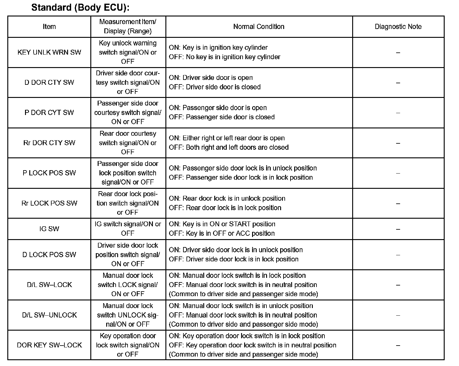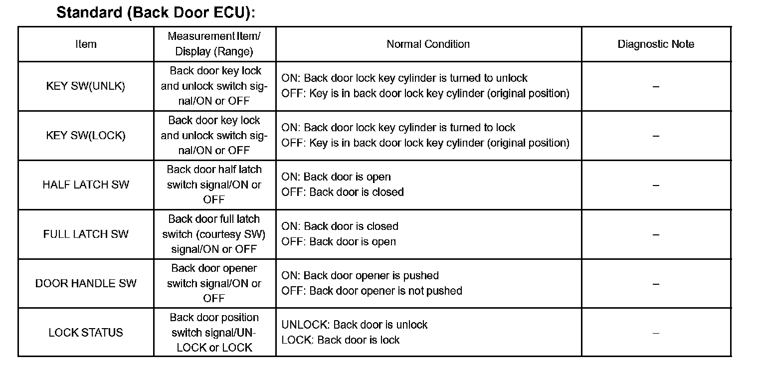 DATA LISTHINT: According to the DATA LIST displayed by the hand-held tester, you can read the value of the switch, sensor, actuator and so on without parts removal. Reading the DATA LIST as a first step of troubleshooting is one of the methods to shorten labor time.