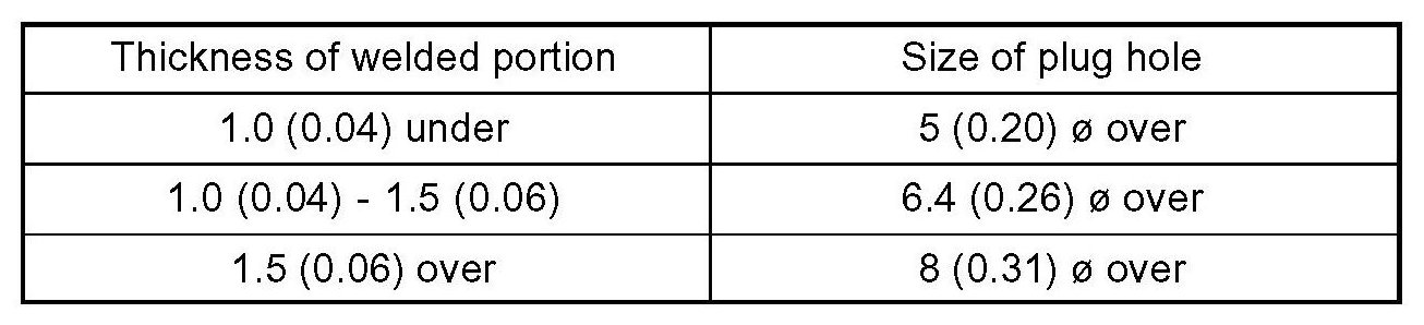 1. When welding panels with a combined thickness of over 3 mm (0.12 in.), use a MIG (Metal Inert Gas) welder for plug welding.