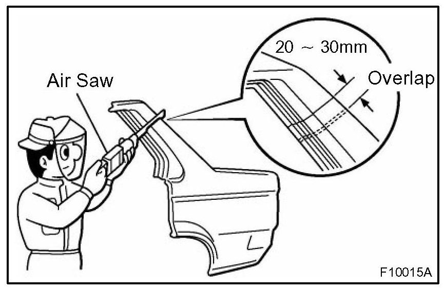 1. For joint areas, rough cut the new parts, leaving 20 - 30 mm (0.79 - 1.18 in.) overlap.