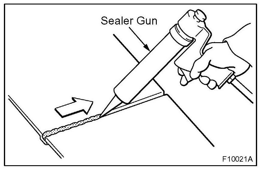 1. For water-proofing and anti-corrosion measures, always apply the body sealer to the body panel seams and hems of the doors, hoods, etc.