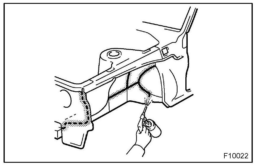 1. To prevent corrosion and protect the body from damage by flying stones, etc., apply anti-chipping paint to the rocker panel, wheel arch areas, balance panel, etc.