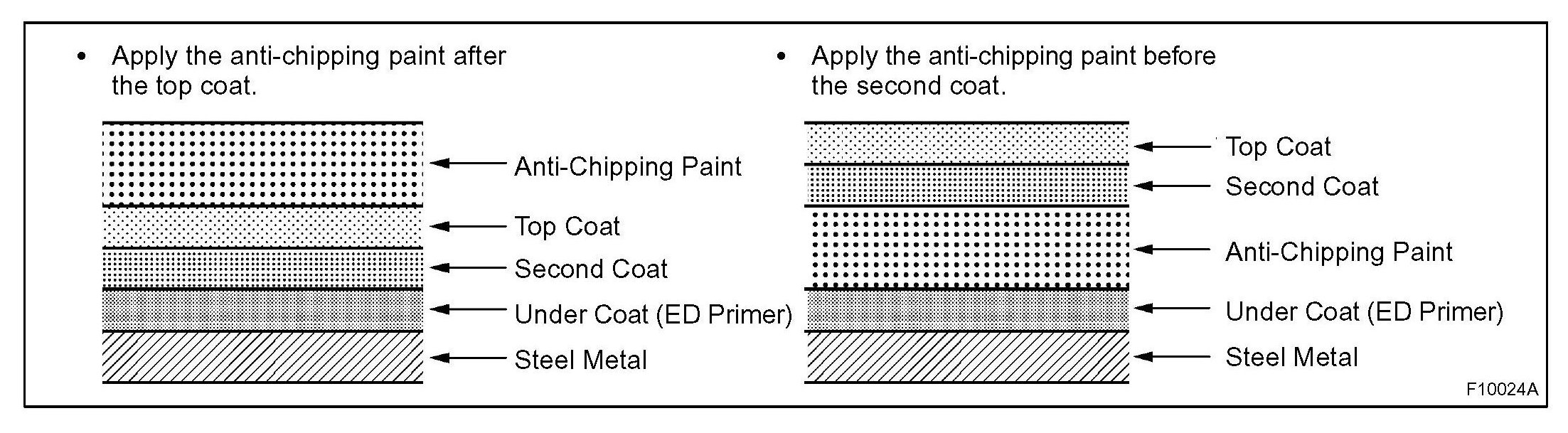 HINT: Depending on the model or the application area, there are cases where the application of anti-chipping paint is necessary before the second coat or after the top coat.