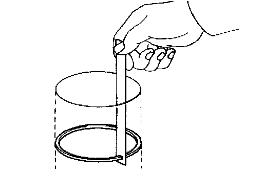 a. Using a piston, push the piston ring a little beyond the bottom of the ring travel, 110 mm (4.33 inch) from the top of the cylinder block.