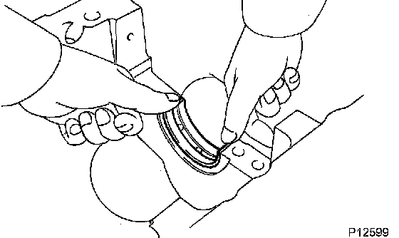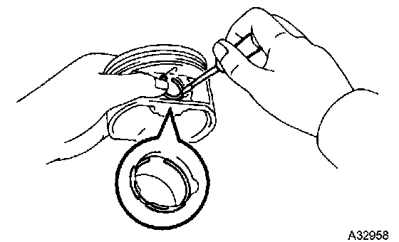 HINT: Be sure that an end gap of the snap ring is not overlapped to the pin hole cutout portion of the piston.