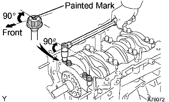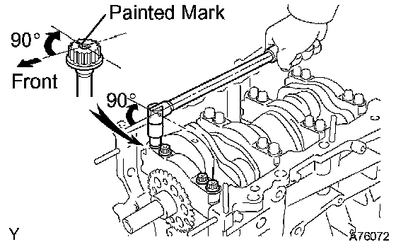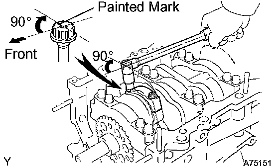 m. Mark the front side of the bearing cap bolts with paint.