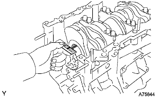 a. Apply engine oil to the upper bearing and install the crankshaft on the cylinder block.