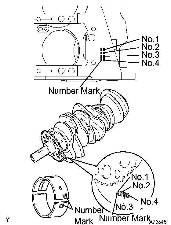 HINT: A number marked on each main bearing cap indicates the installation position.