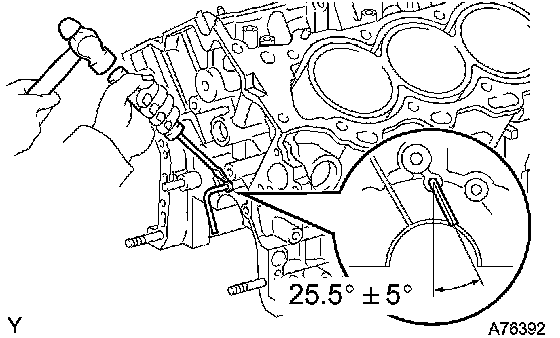b. Align the bearing claw with the claw groove of the cylinder block, and push in the 4 upper bearings.