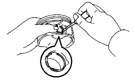 a. Using a screwdriver, install a new snap ring on the other side of the piston pin hole.