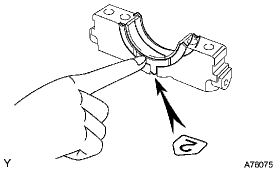 c. Install the 2 lower thrust washers on the No.2 bearing cap with the grooves facing outward.