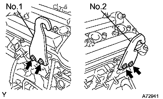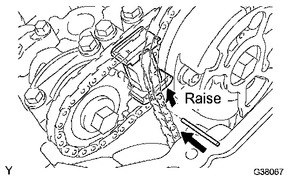 a. While raising the chain tensioner No. 2, insert a pin of [diameter]1.0 mm (0.039 inch) into the hole to fix it.