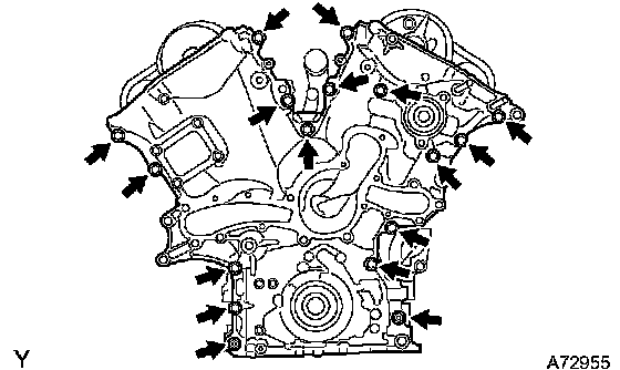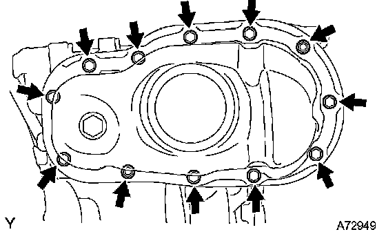 ^ Be careful not to damage the contact surfaces of the oil pan and oil pan No.2.