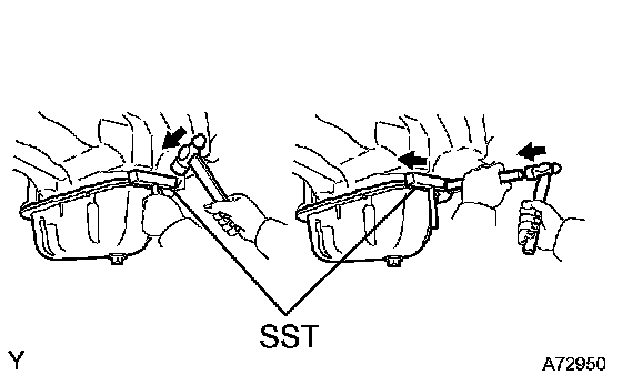 b. Insert the blade of SST between the oil pan and oil pan No.2, and cut off applied sealer and remove the oil pan No.2.