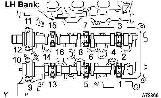 b. Remove the camshafts of the LH bank.