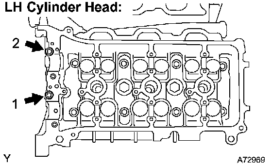 a. Using several steps, remove the 2 cylinder head bolts on the LH cylinder head in the sequence as shown in the illustration.