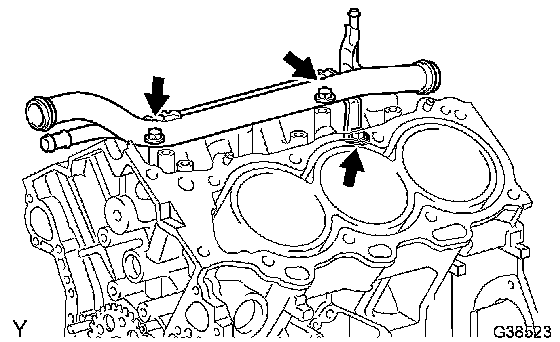 b. Remove the 3 bolts and water outlet pipe.