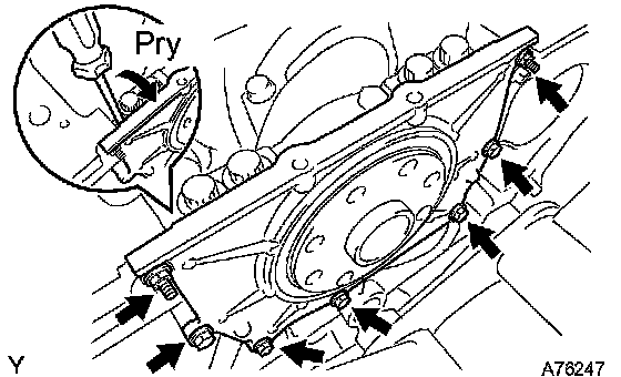 b. Using a screwdriver, remove the oil seal retainer by prying between the oil seal retainer and crankshaft bearing cap.