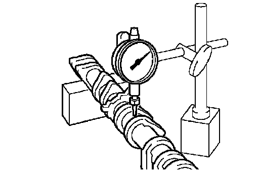2 Using a dial indicator, measure the runout at the center journal.