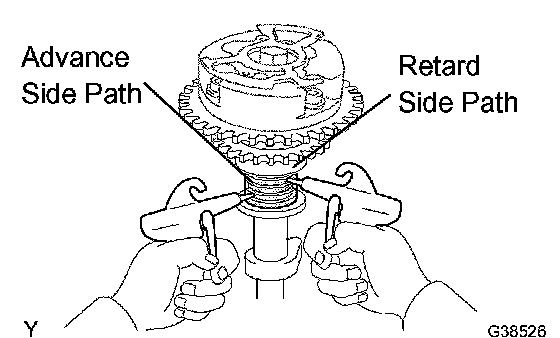 HINT: When the lock pin is released, the camshaft timing gear rotates in the advance direction.