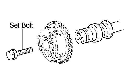 g. Remove the set bolt and camshaft timing gear assembly.