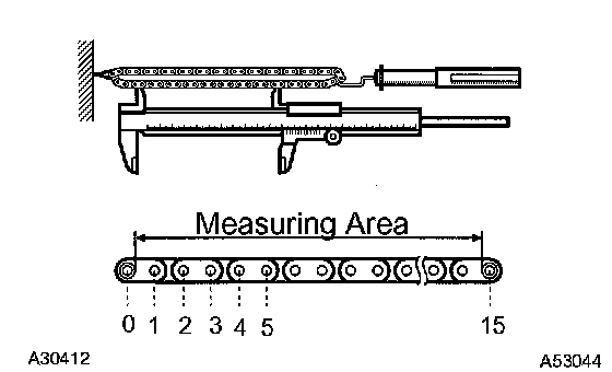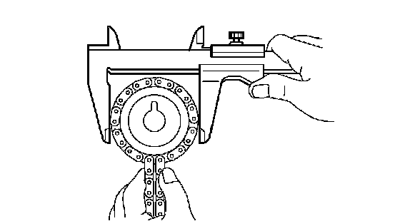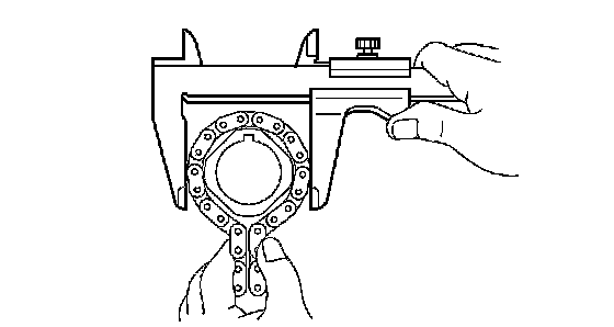 NOTICE: The vernier calipers must contact the chain rollers for the measuring.