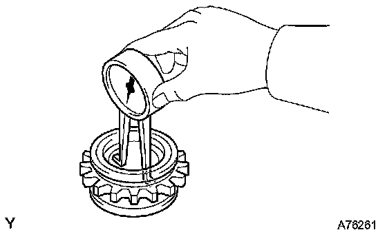 b. Using a caliper gauge, measure the inside diameter of the idle gear.