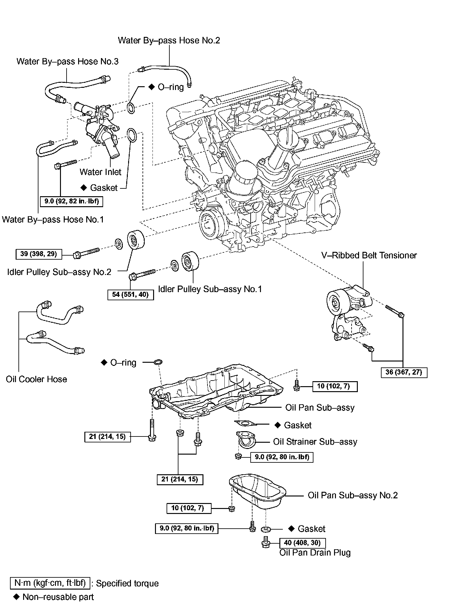 49. INSTALL V-RIBBED BELT TENSIONER ASSEMBLY