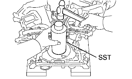 a. Using SST and a hammer, tap in a new oil seal until its surface is flush with the timing chain cover edge.