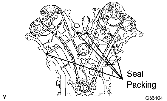 a. Remove any old packing (FIPG) material and be careful not to drop any oil on the contact surfaces of the timing chain cover, cylinder head and cylinder block.