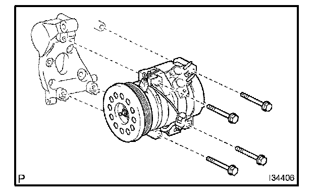 b. Remove the 4 bolts and the compressor and magnetic clutch.