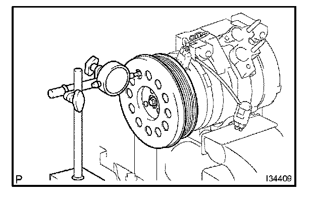 a. Place the compressor and magnetic clutch in a vise.