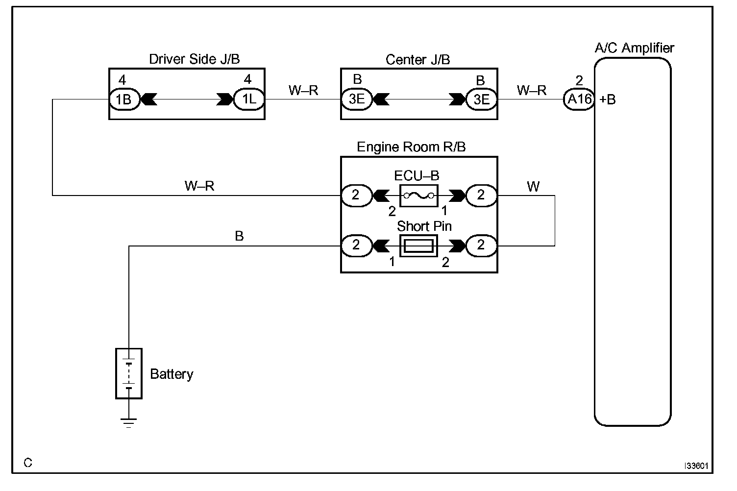 This is the back-up power source for the A/C amplifier. Power is supplied even when the ignition switch is off and the power is used for backing up diagnostic trouble code memory, etc.